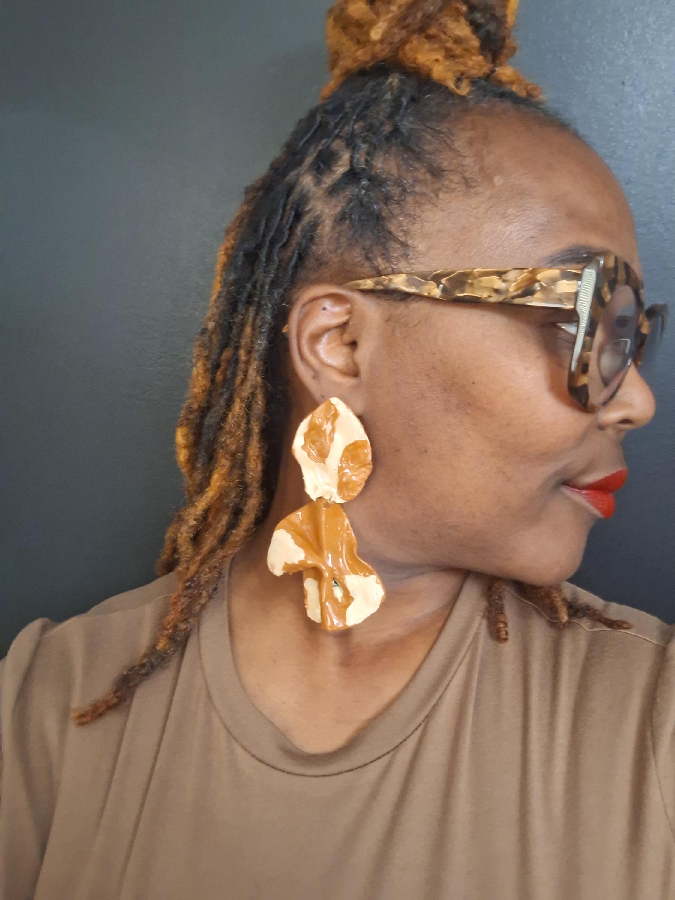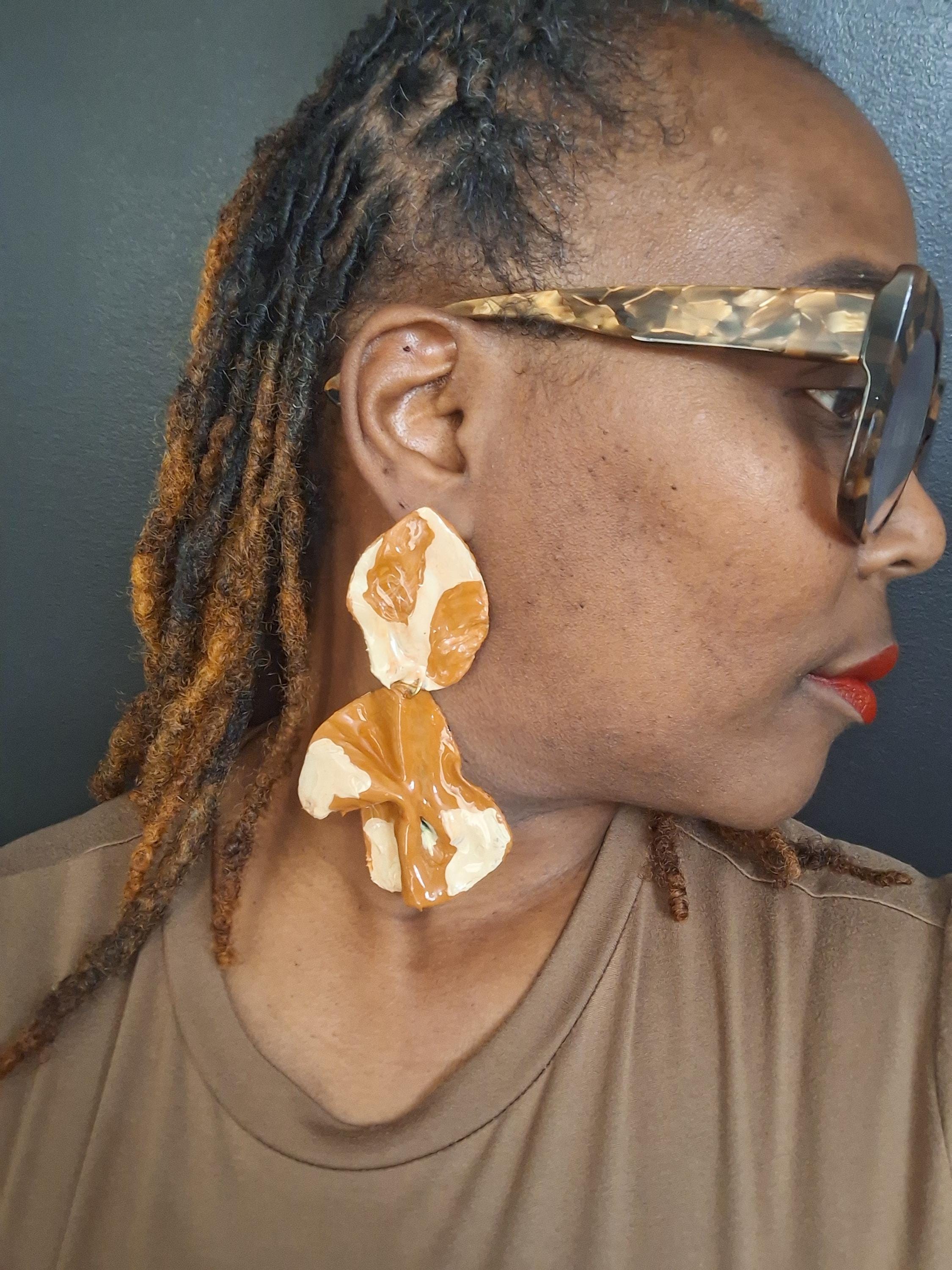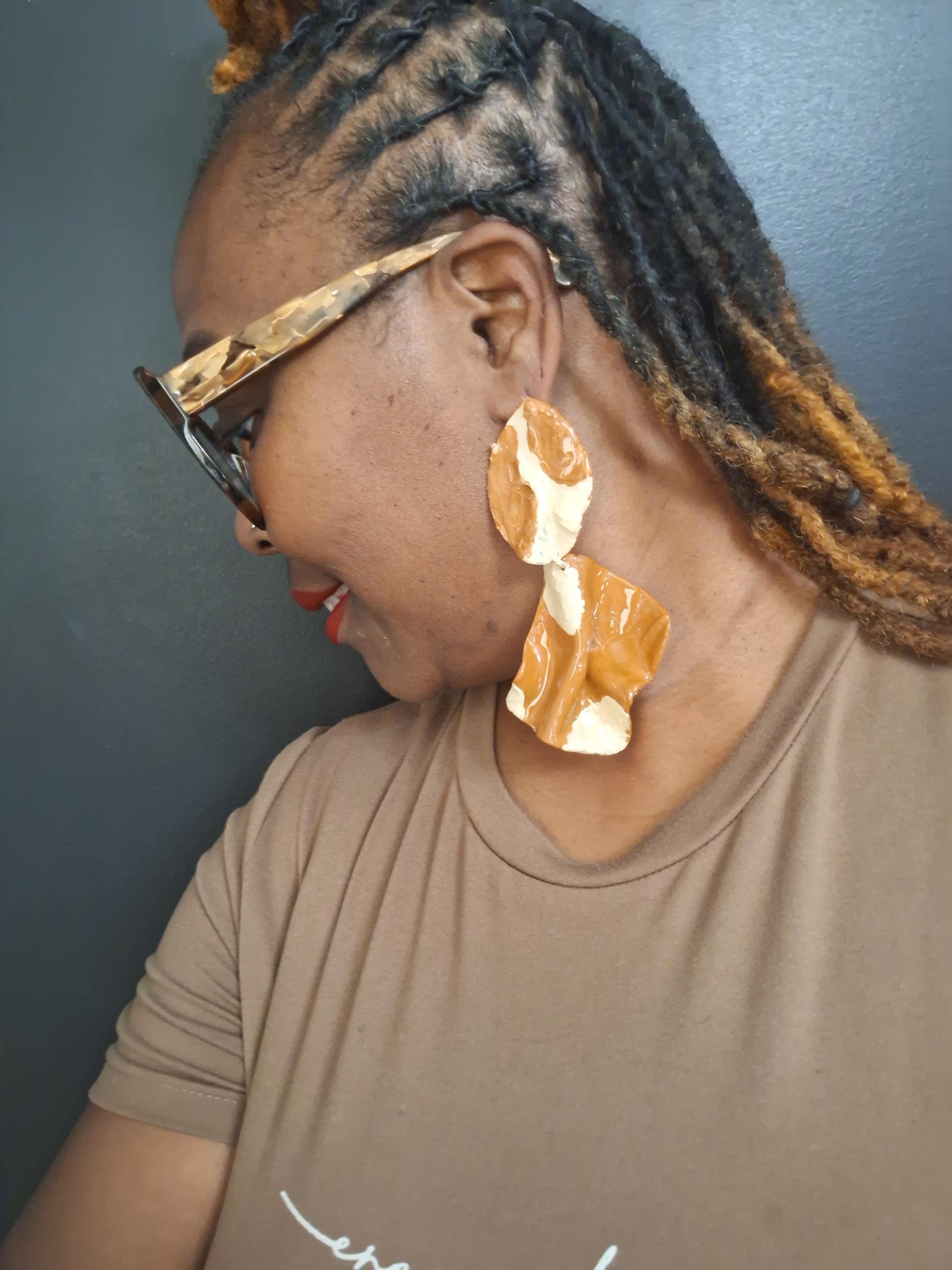 Polymer Clay hand shaped Geometric gold post Statement Earrings.No two earrings will be exactly the same.