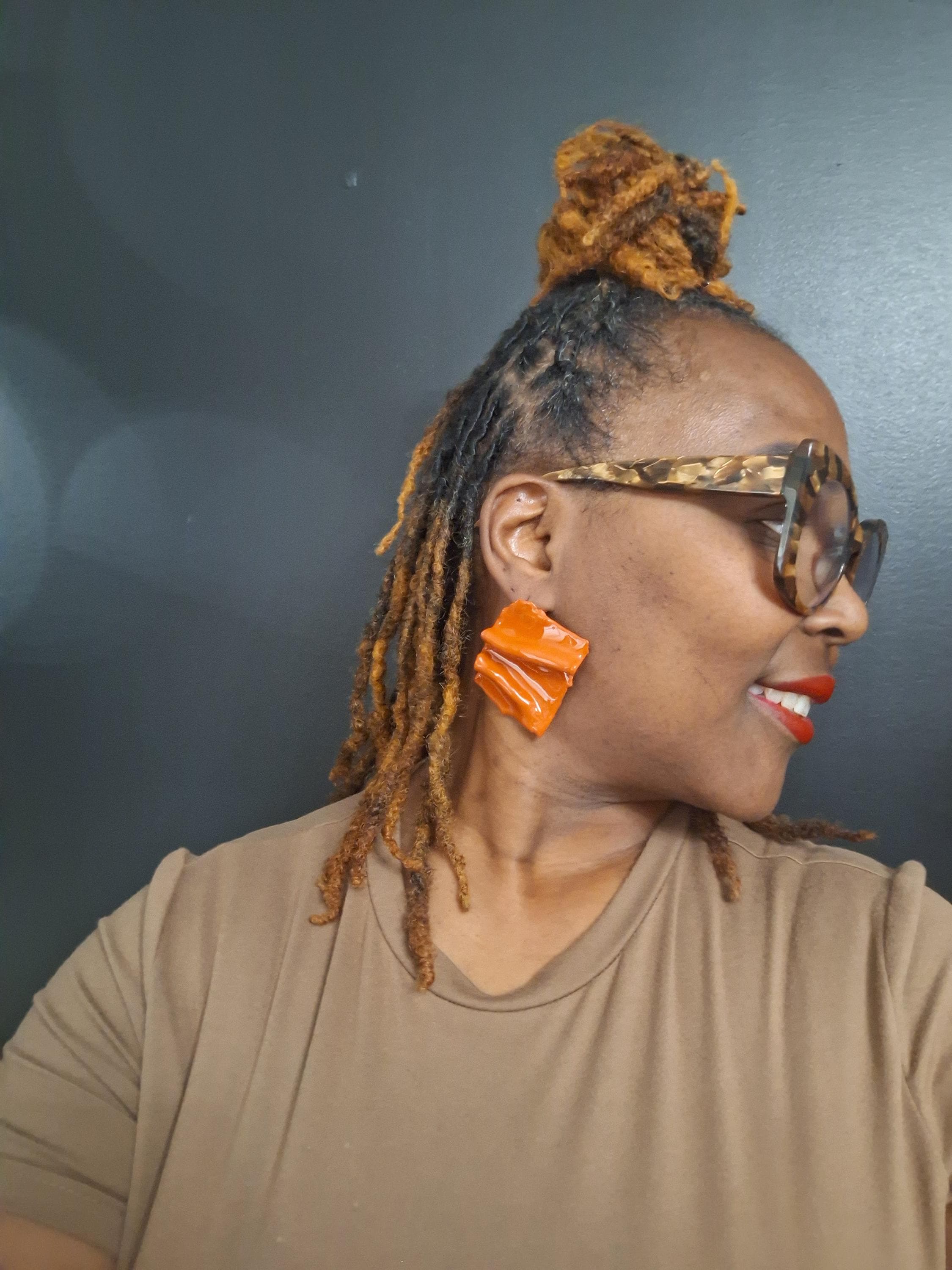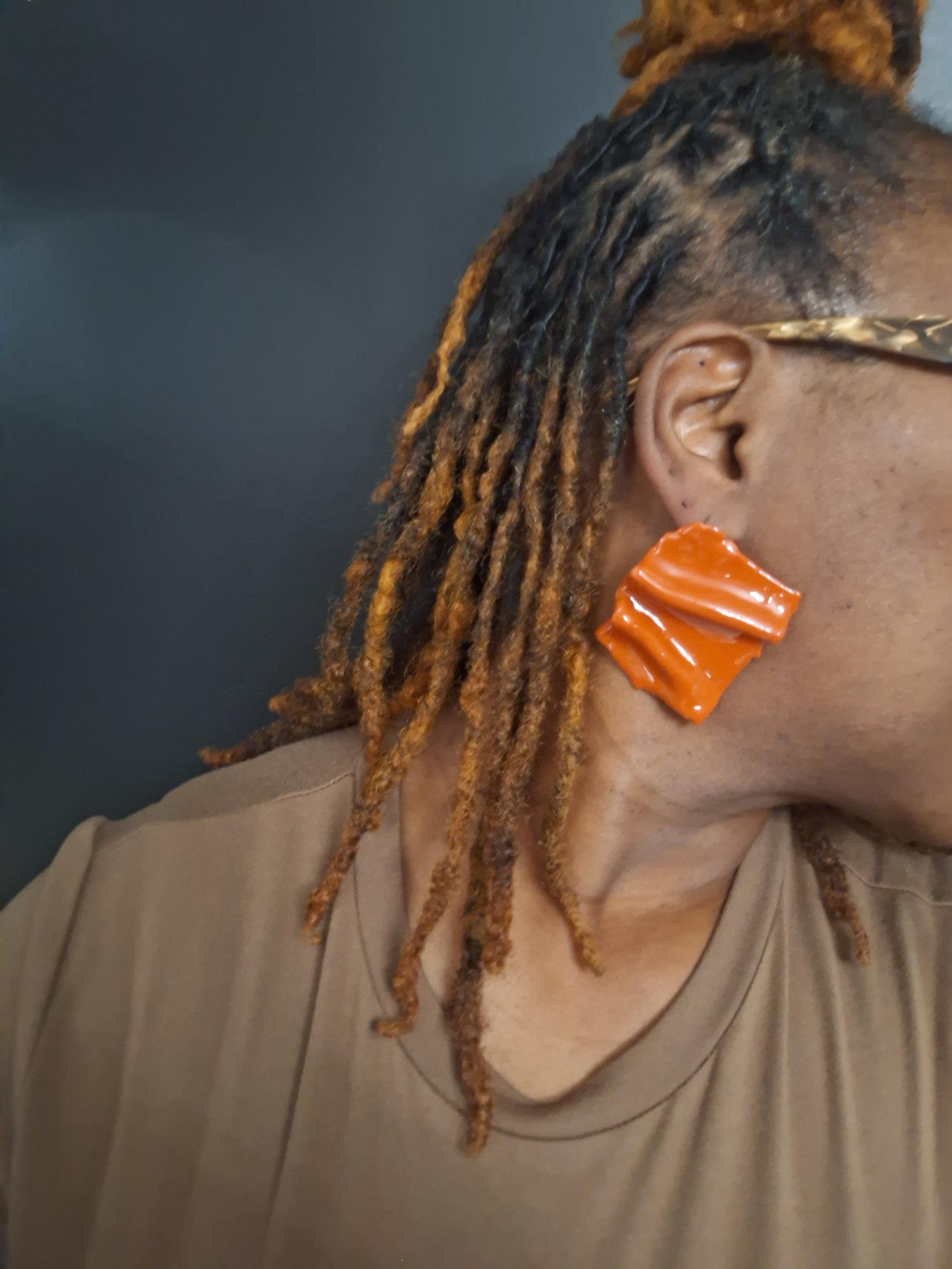 Polymer Clay hand shaped Geometric gold post Statement Earrings.No two earrings will be exactly the same.