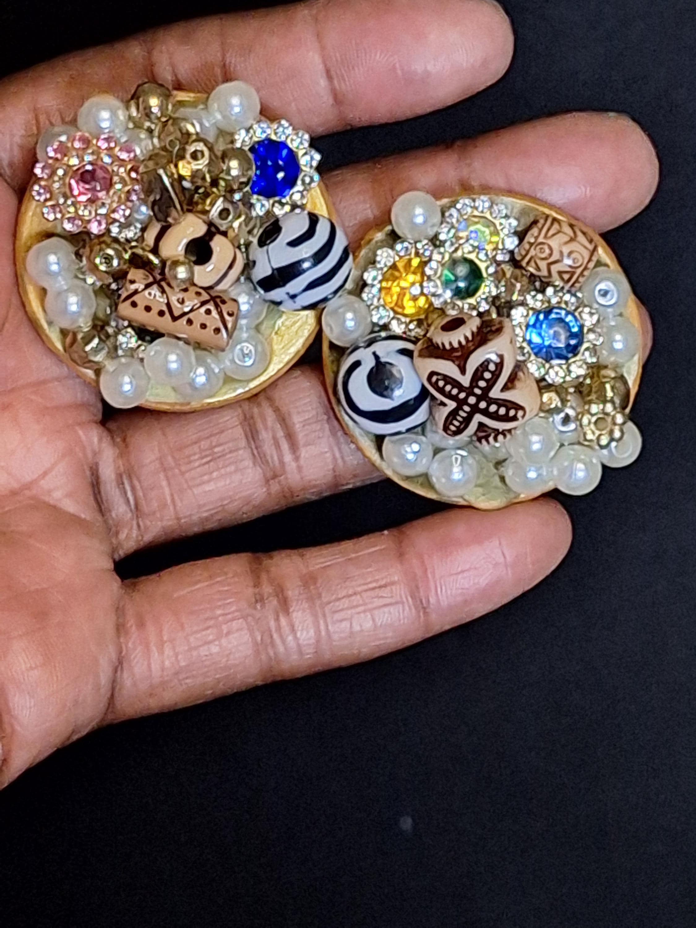 Upcycled jeweled gold post Statement Earrings. No two earrings will be exactly the same.