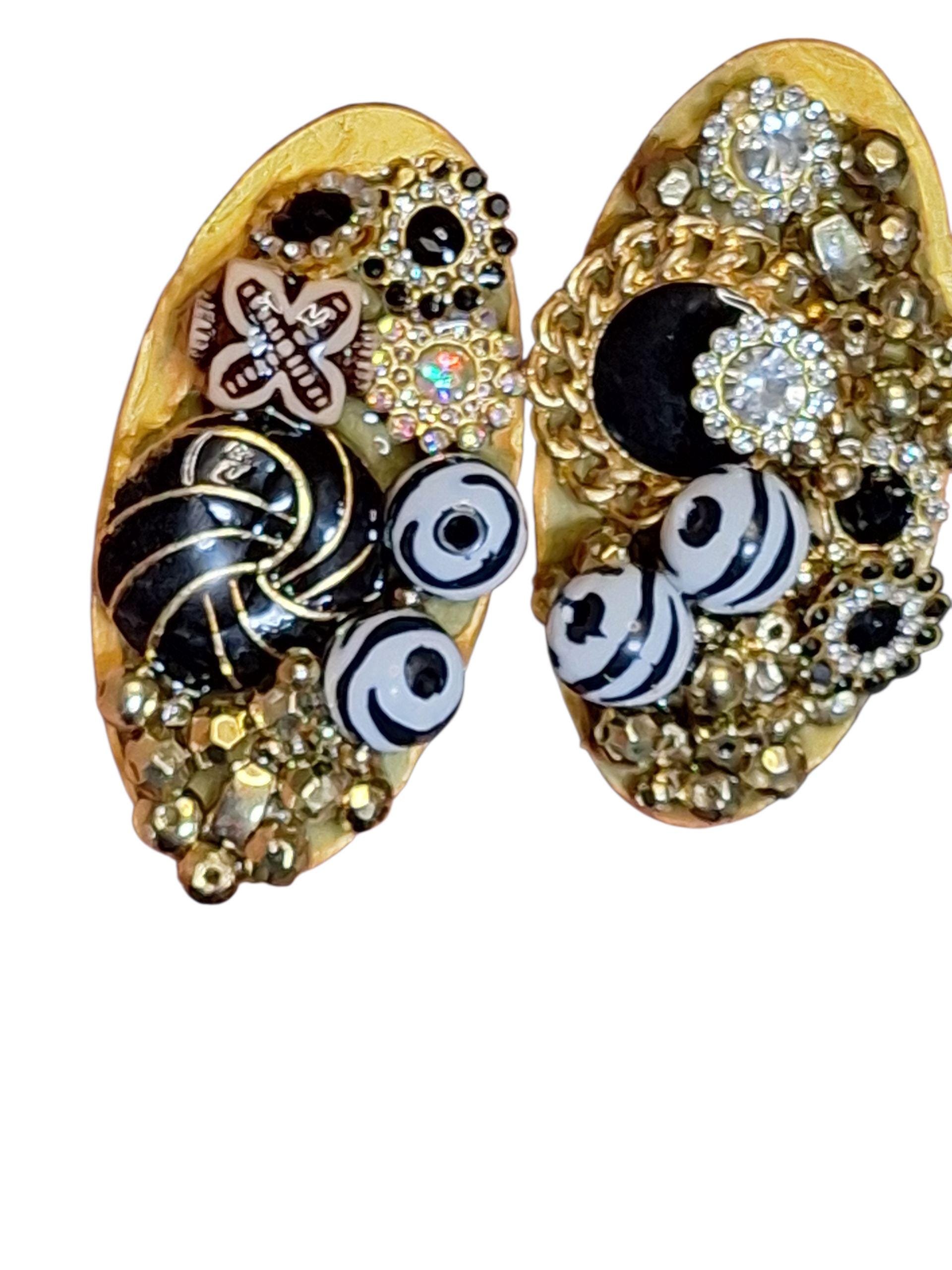 Upcycled jeweled gold post Statement Earrings. No two earrings will be exactly the same.