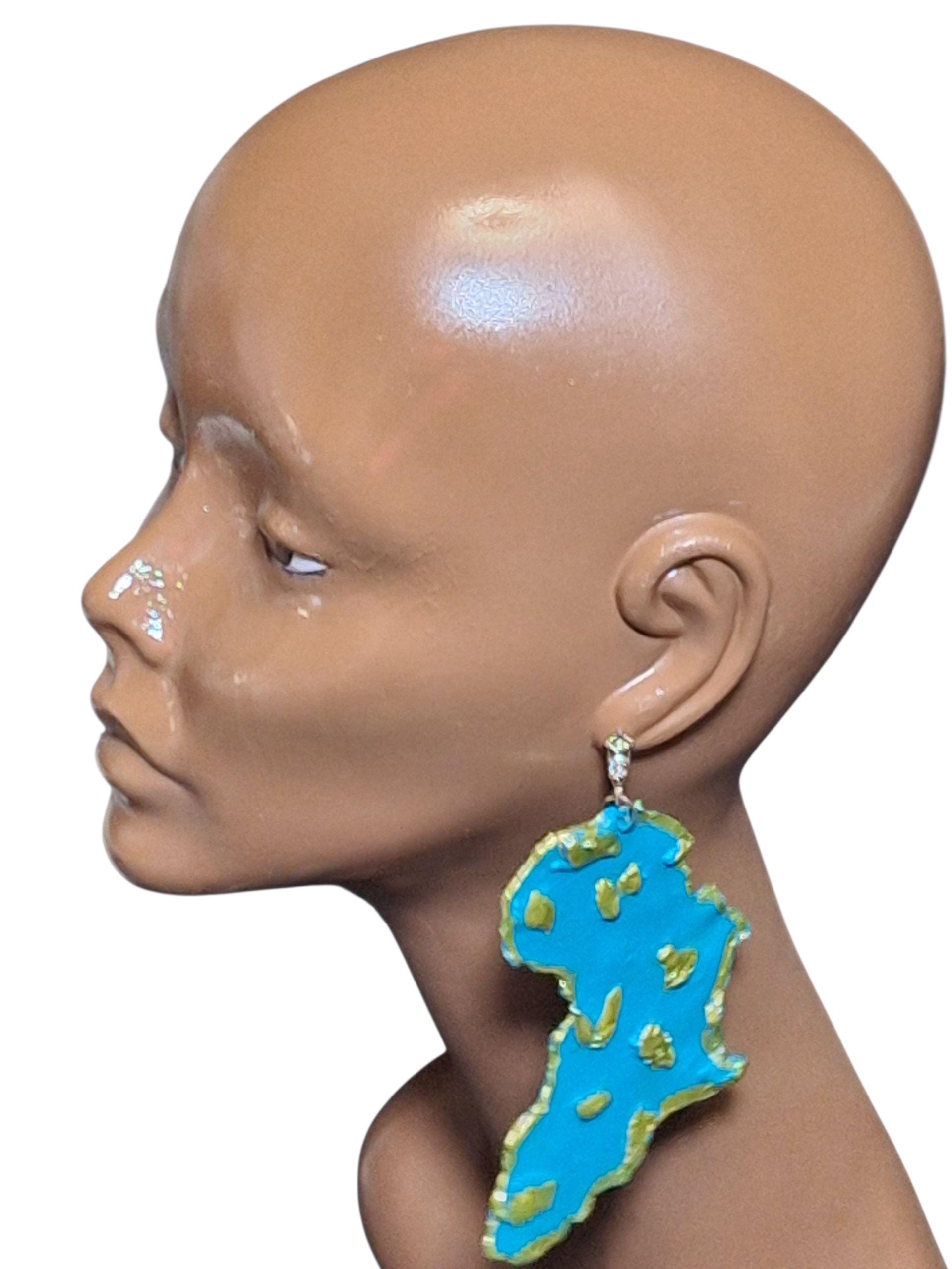 Polymer Clay Leopard Map shaped gold post Statement Earrings. No two earrings will be exactly the same.