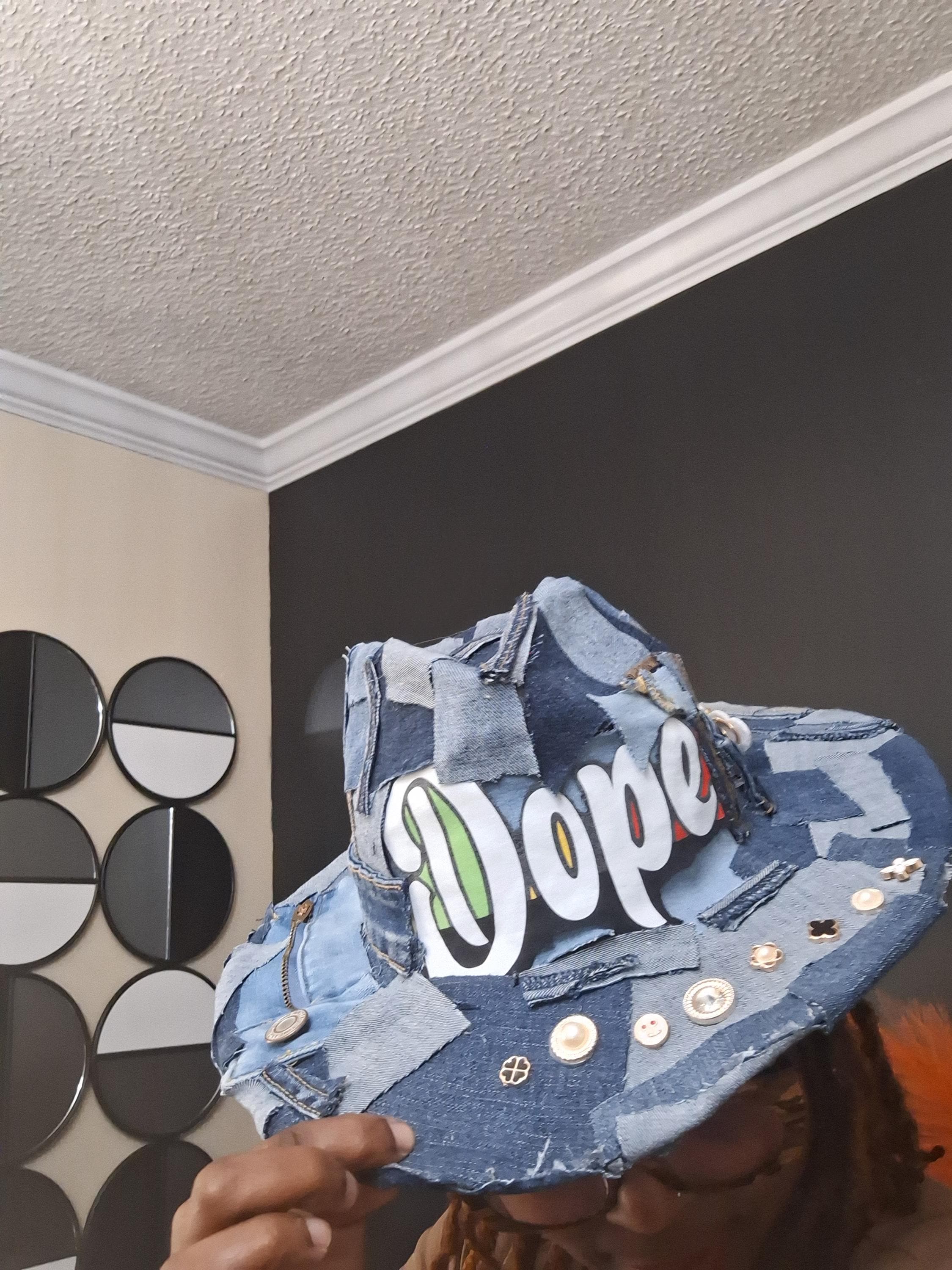 1 of 1 cowboy upcycled hat. Get it before it's gone.