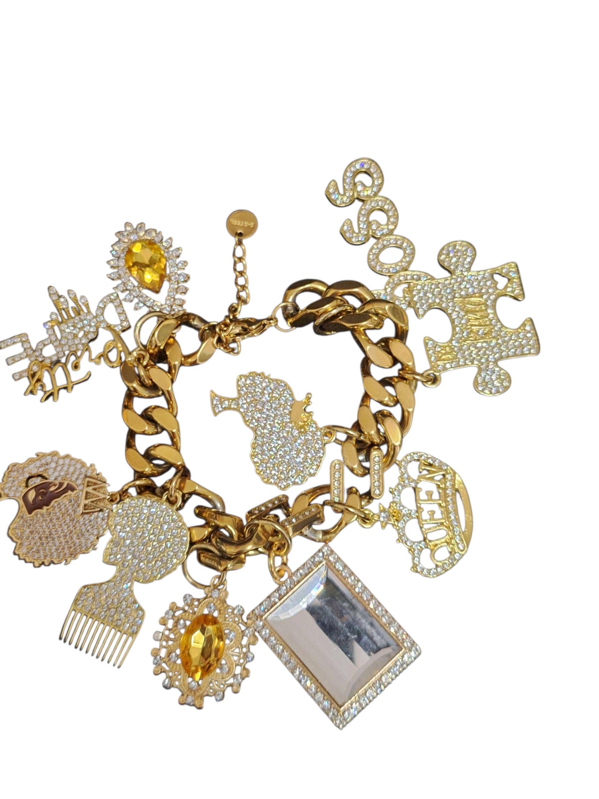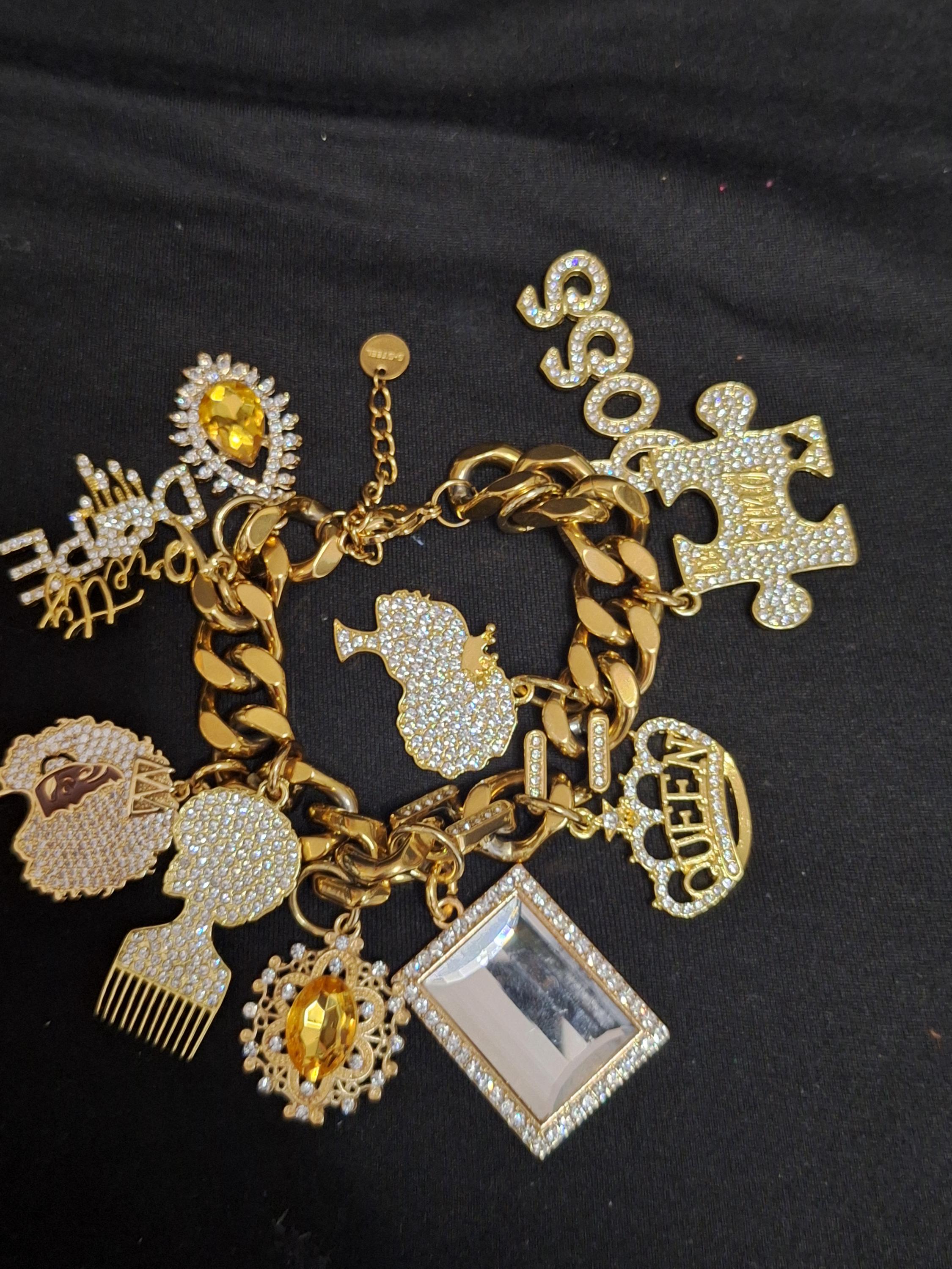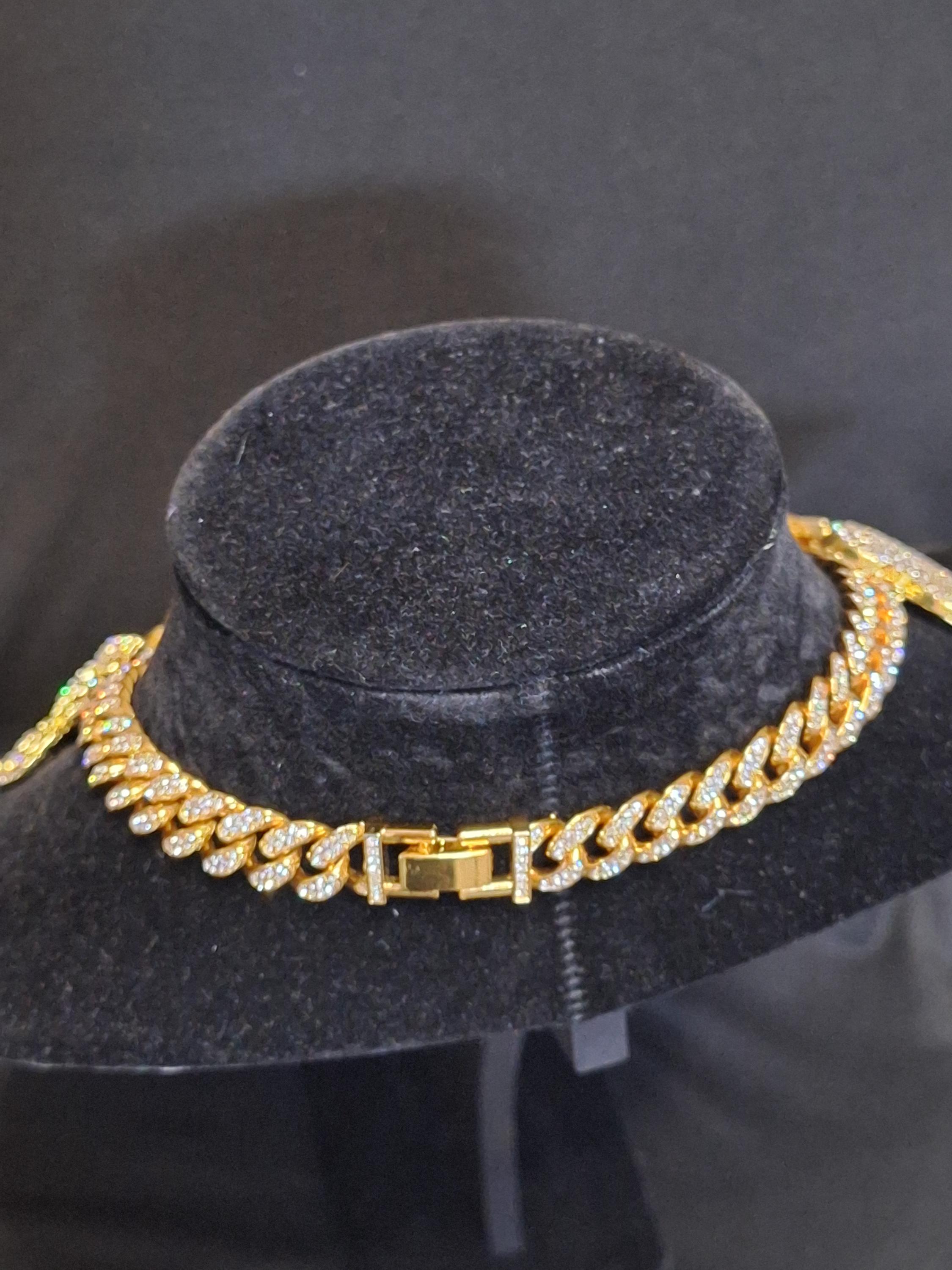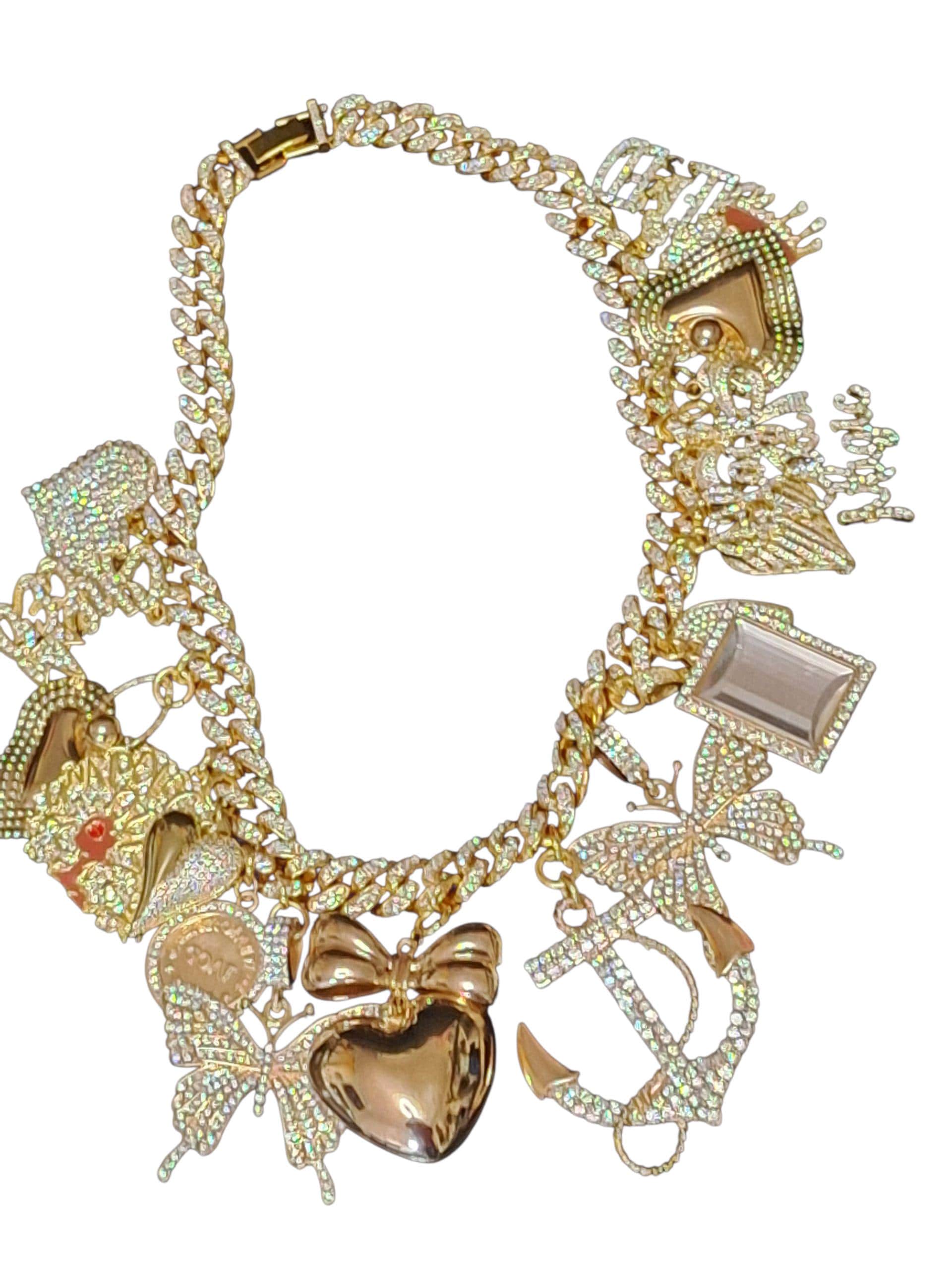 Necklace length: Gold Ice 16 inches with multiple gold plated charms.