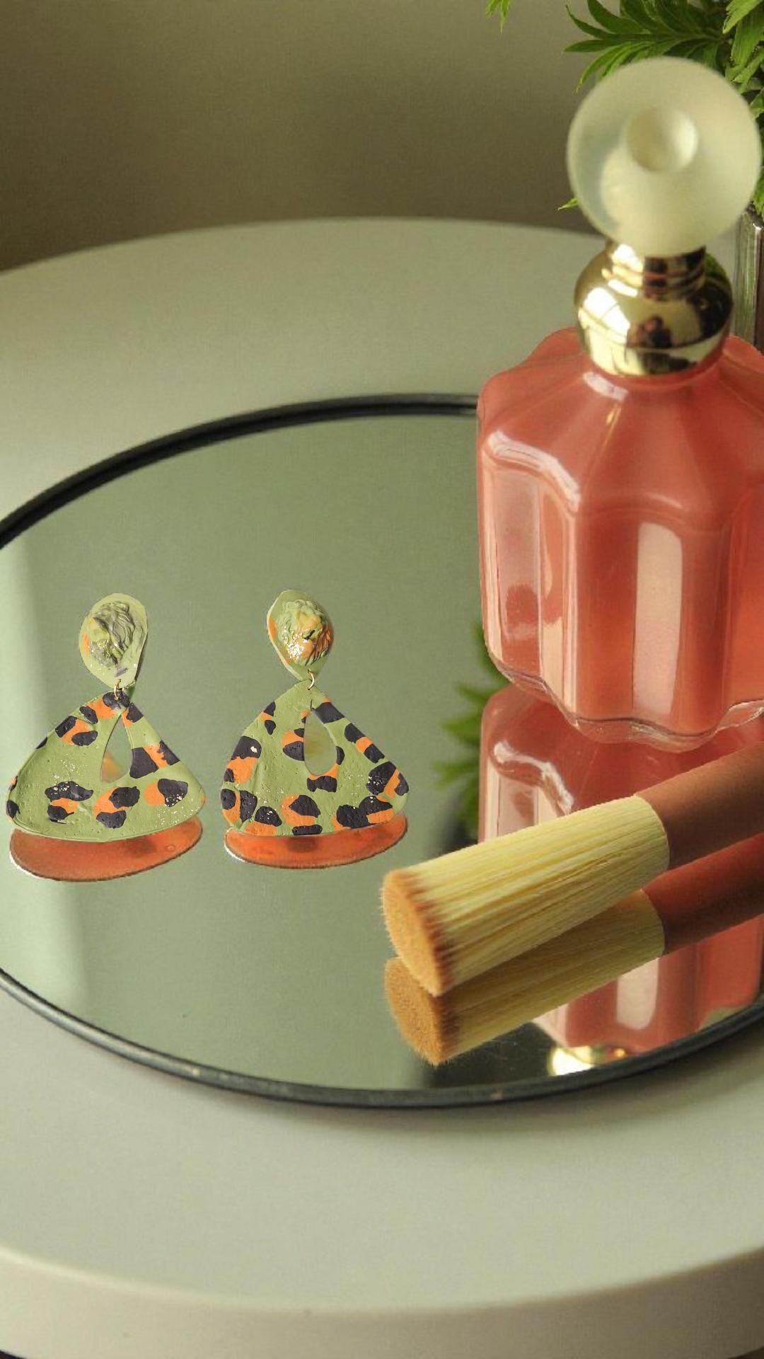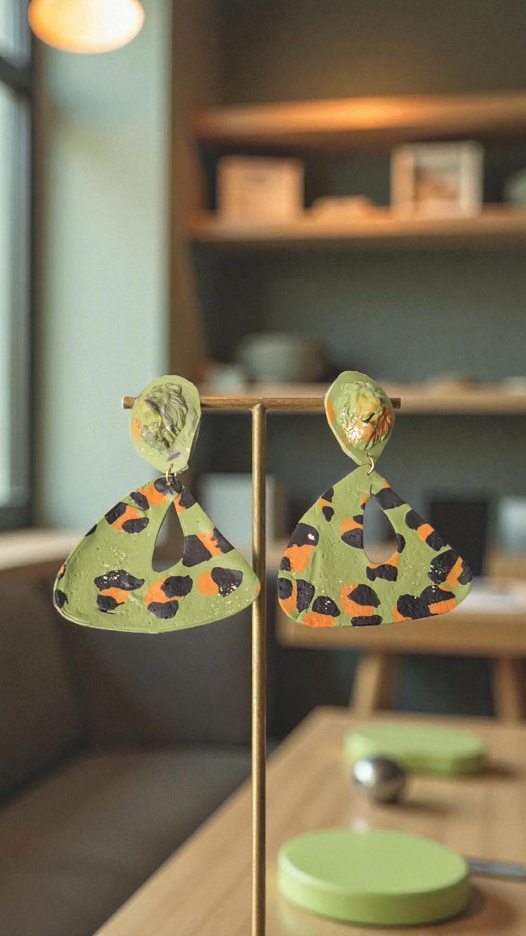 Polymer Clay Leopard Map shaped gold post Statement Earrings. No two earrings will be exactly the same.