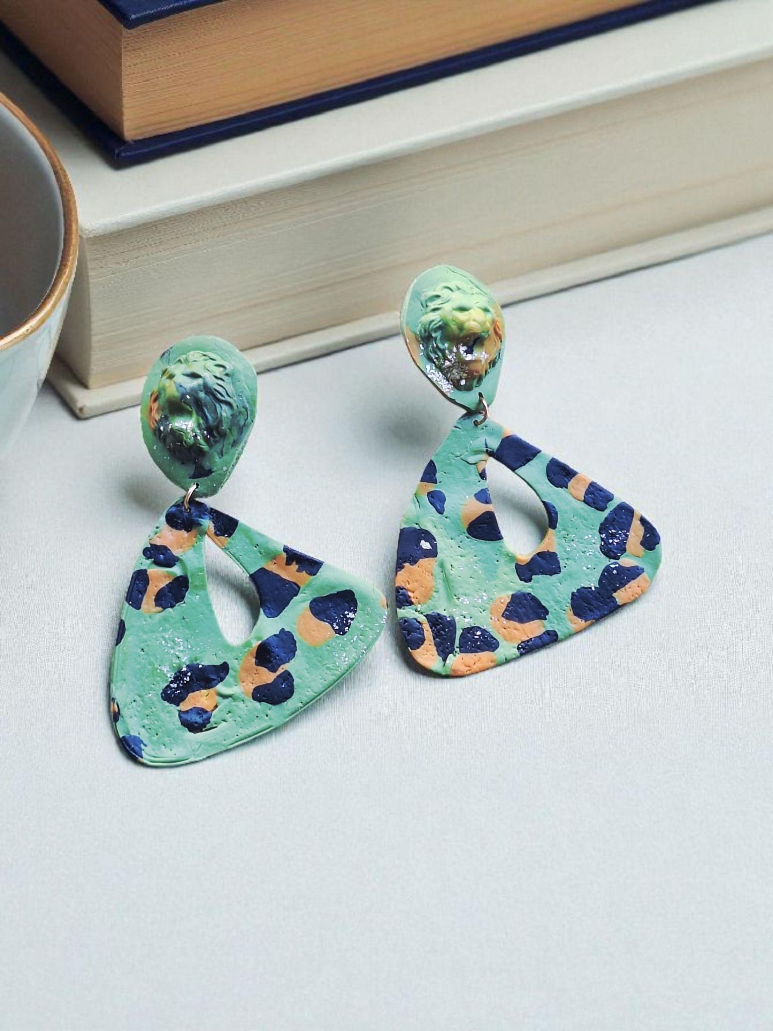 Polymer Clay Leopard Map shaped gold post Statement Earrings. No two earrings will be exactly the same.