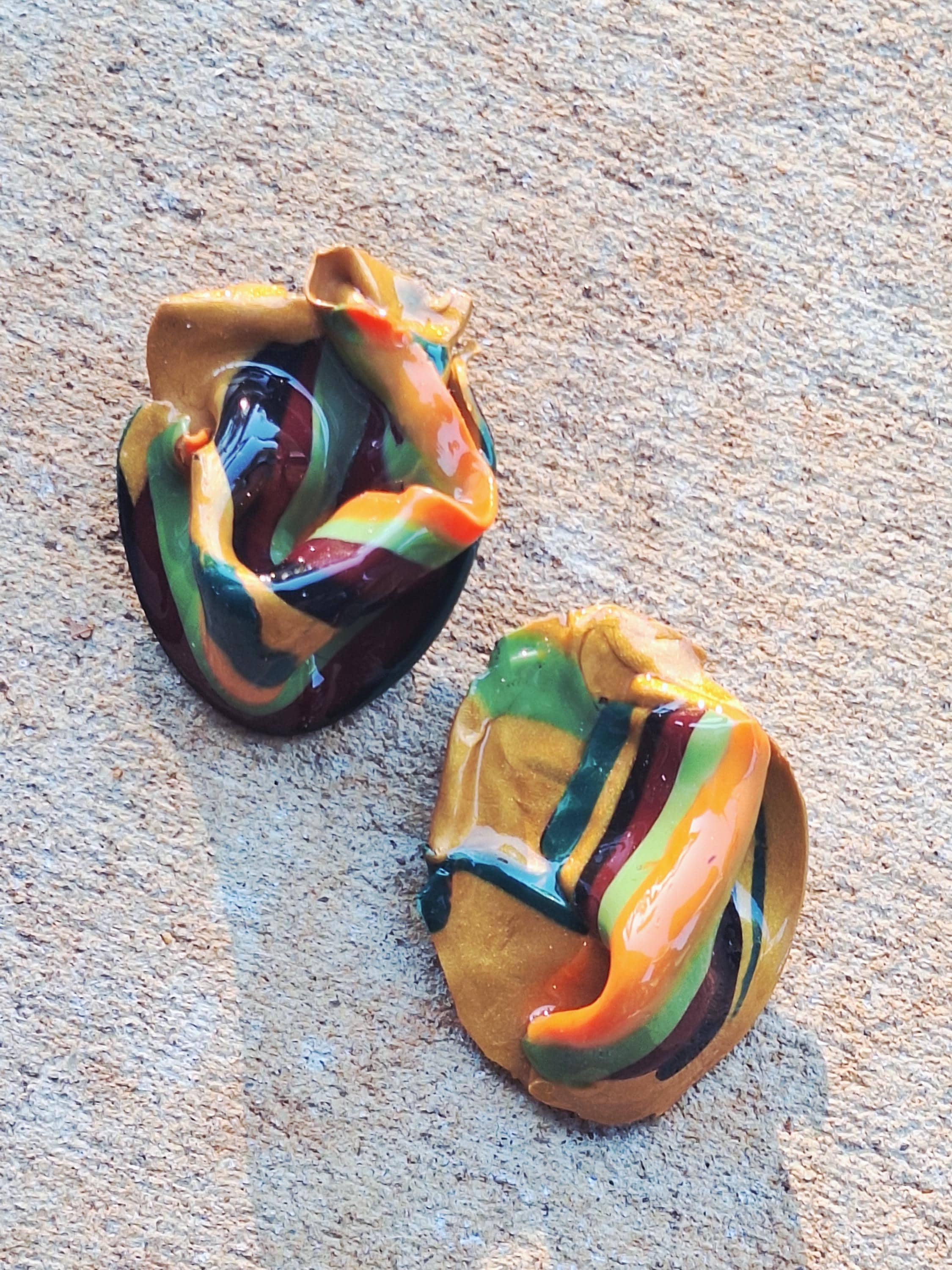 Hand Sculpted Striped Polymer Clay Statement Earrings